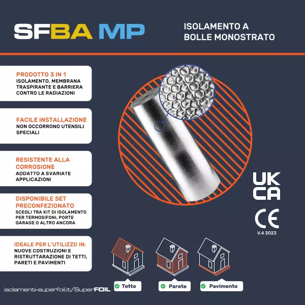 Che tu sia un tuttofare, un hobbista o un costruttore professionista, gli isolanti multiuso SuperFOIL sono progettati per soddisfare le tue esigenze. Con una barriera al vapore integrata e una finitura in lamina riflettente, è ideale per un'ampia gamma di impieghi e offre una scelta semplice e conveniente per tutti i progetti di miglioramento degli edifici. Le lamine sottili e altamente riflettenti possono riflettere fino al 97% del calore, minimizzando significativamente la perdita di calore in inverno e riducendo l’accumulo di calore in estate. Ciò significa che SuperFOIL manterrà la tua casa calda d'inverno e fresca d'estate.