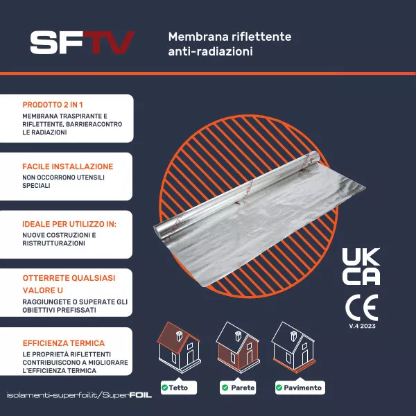 La superficie altamente riflettente funge da barriera al calore radiante, ma non per il suo assorbimento, come avviene con gli isolanti tradizionali. Le barriere radianti riducono al minimo l'accumulo di calore solare e il surriscaldamento in estate, mentre aiutano a mantenere il calore all'interno della casa in inverno. Ciò significa che le barriere radianti sono la soluzione perfetta per ridurre al minimo la dipendenza dai sistemi di riscaldamento e raffreddamento, risparmiando denaro sulle bollette energetiche e prevenendo danni strutturali dovuti alla condensa.